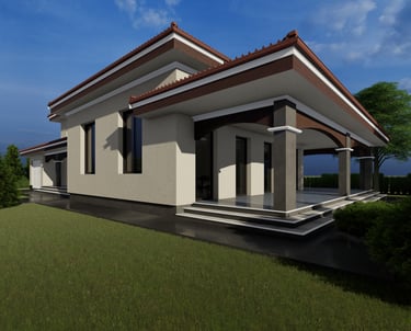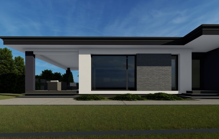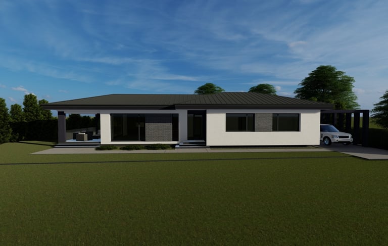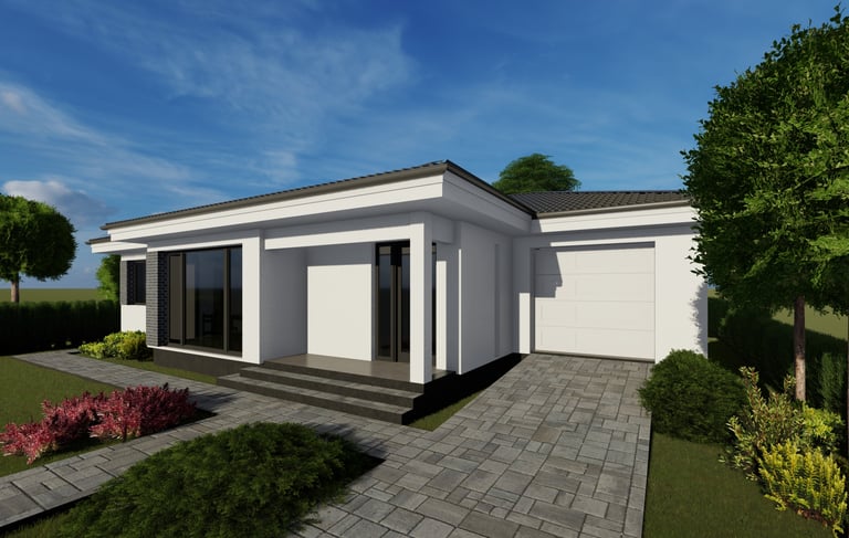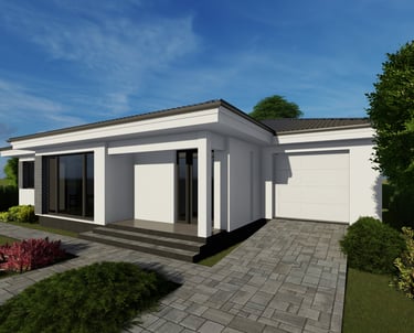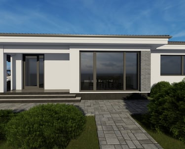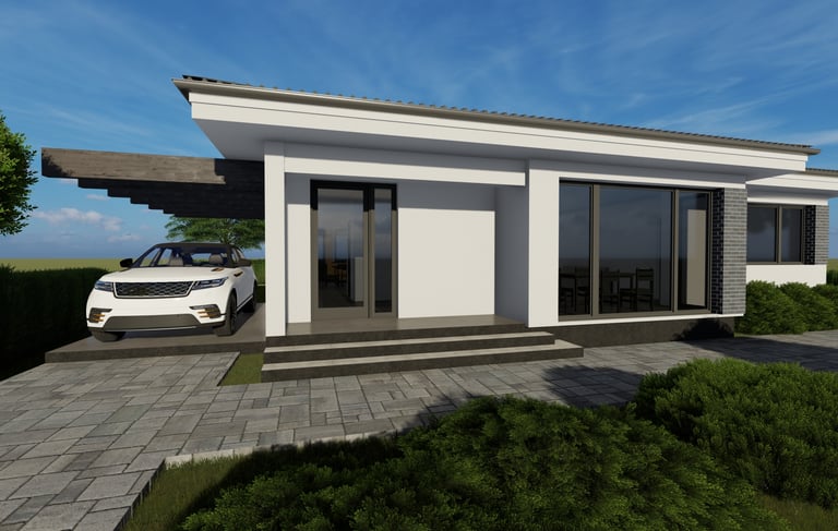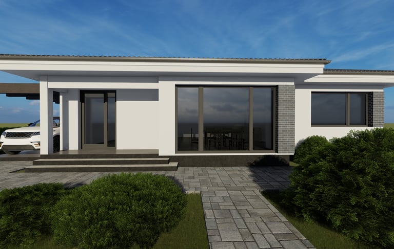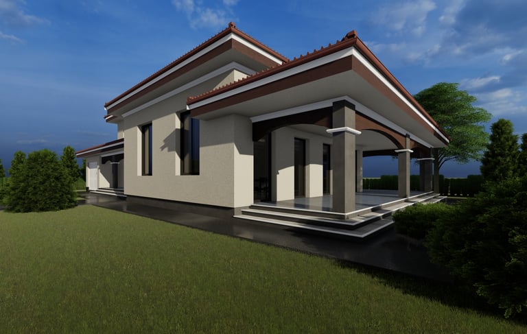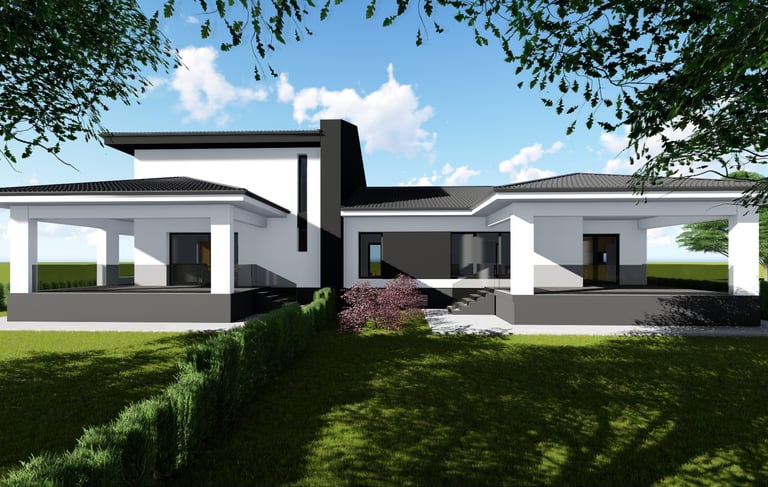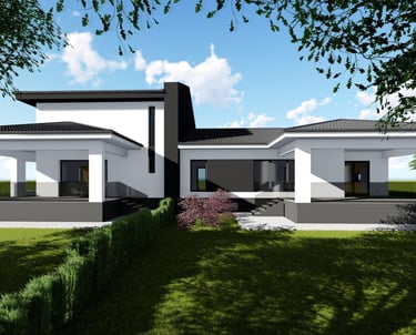 VitaDomus este o locuință parter cu un design clasic și rafinat, creată pentru a oferi confort și armonie. Spațiile sale sunt generoase și bine structurate, punând în valoare proporțiile echilibrate și detaliile arhitecturale elegante.