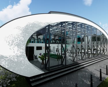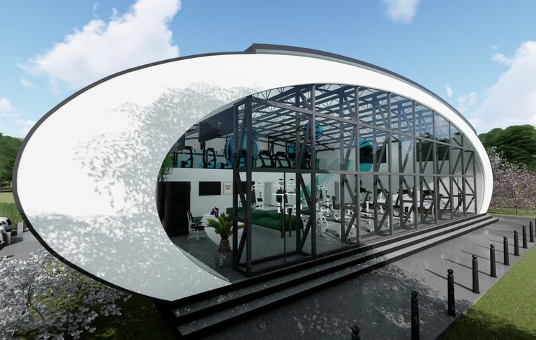 Proiectată integral de compania noastră, fiecare detaliu al acestei săli de fitness a fost gândit cu atenție, de la structura metalică robustă până la finisajele care creează un mediu confortabil și eficient pentru antrenamente. Forma distinctivă de ou adaugă un element de originalitate și inovație, făcând din Ovum nu doar un loc pentru fitness, ci și un simbol al designului contemporan.
