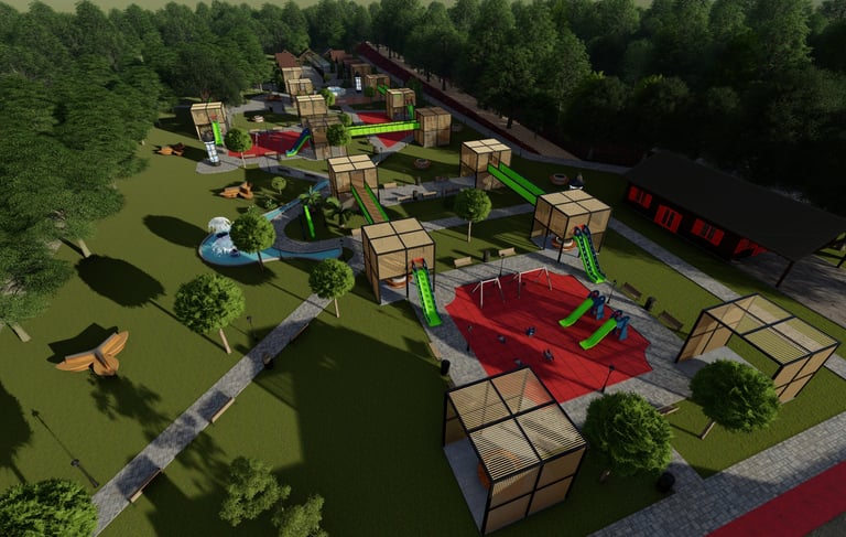 În inima Târgu Mureșului, lângă pădure și Grădina Zoologică, Case de Poveste a dat un suflu nou unui parc deja iubit, transformându-l într-un spațiu verde modern, curat și primitor.Proiectul a urmărit îmbunătățirea funcționalității fără a pierde farmecul natural al locului: