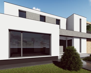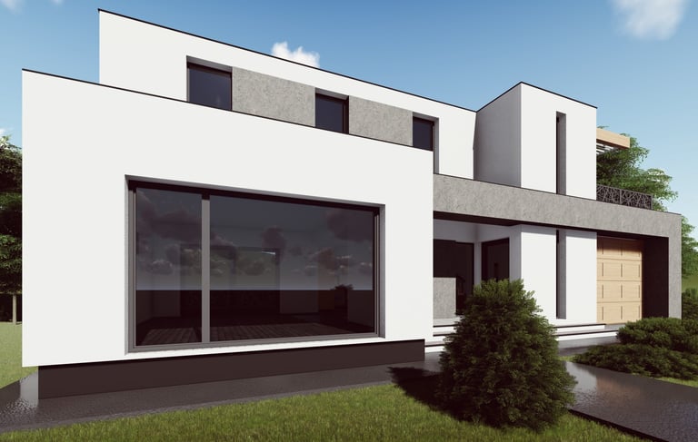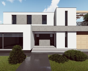 Casa Aesthetica este o locuință modernă P+E, construită din cărămidă și beton, cu un acoperiș tip terasă și o fațadă elegantă în alb și gri antracit. Designul său minimalist este completat de terase spațioase la parter și etaj, precum și un garaj integrat.
