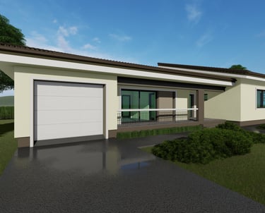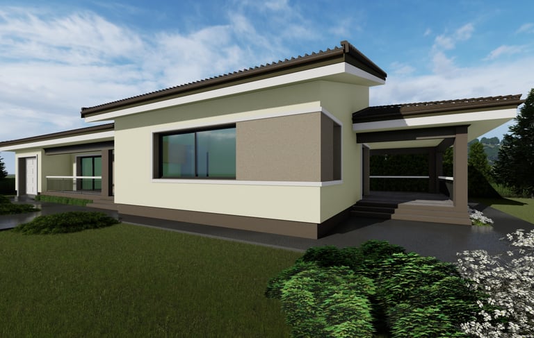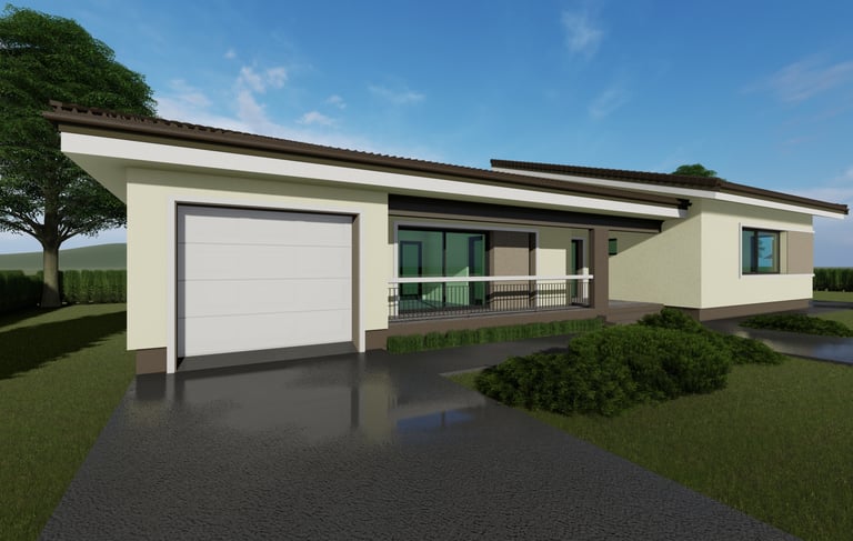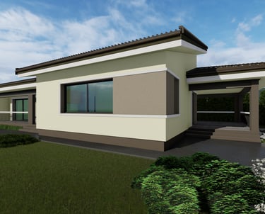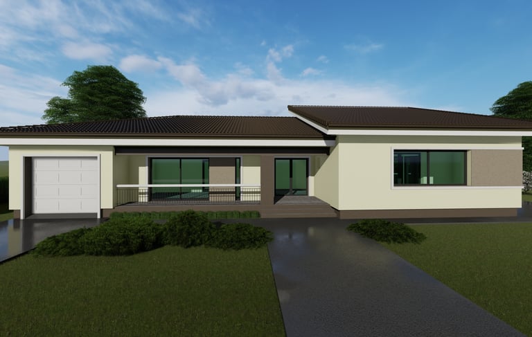 VitaDomus este o locuință parter cu un design clasic și rafinat, creată pentru a oferi confort și armonie. Spațiile sale sunt generoase și bine structurate, punând în valoare proporțiile echilibrate și detaliile arhitecturale elegante.