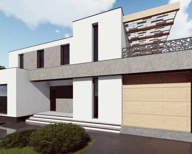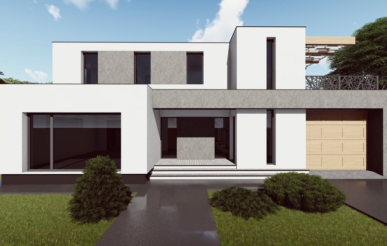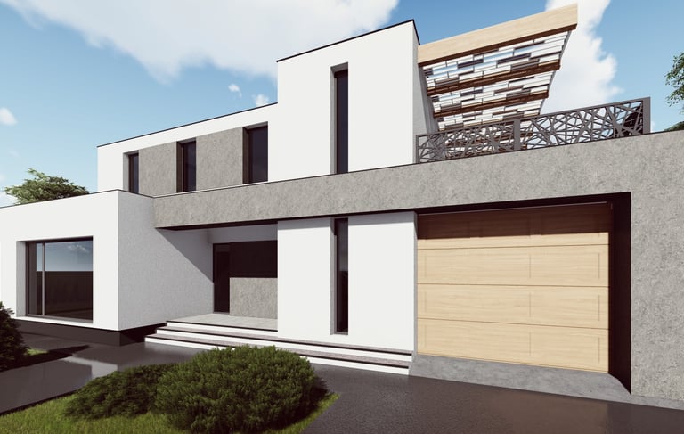 VeroDesign este o locuință impresionantă D+P+E, construită din cărămidă și beton, ce redefinește eleganța contemporană printr-un design futurist. Liniile drepte și geometrice domină estetica exterioară și interioară, evidențiate de paleta rafinată de culori în alb și gri antracit.
